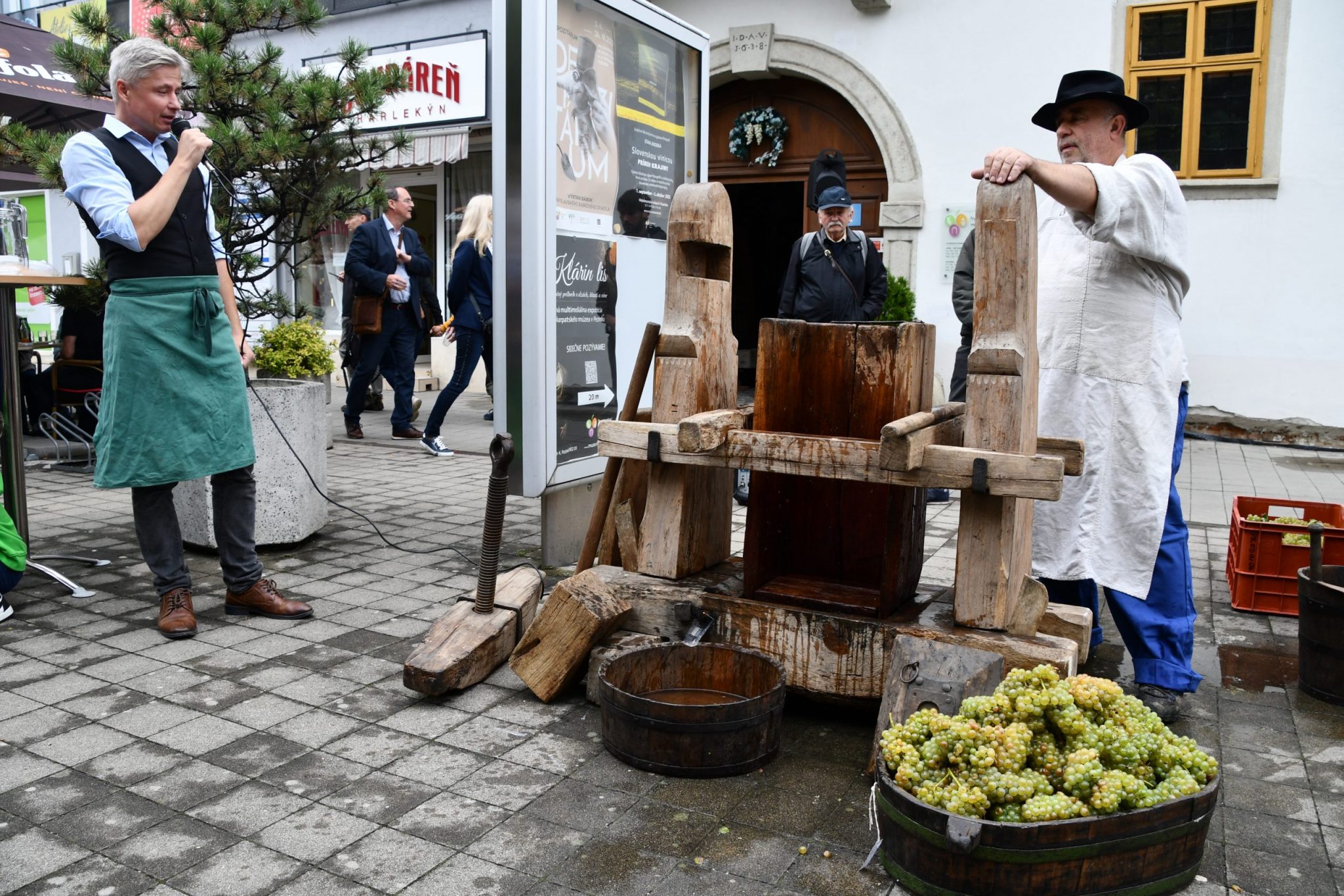 Nezabúdame ani na tradičnú prešovačku, ktorá bola netradične tento rok prezentovaná pred budovou Malokarpatského múzea. Vytiahnuť prešovačku na ulicu bola veľmi dobrá voľba, pretože mala veľký úspech medzi návštevníkmi. V oboch prezentačných časoch bol riaditeľ múzea Martin Hrubala obkolesený divákmi, ktorých zaujal tradičný postup a možnosť ochutnať čerstvo vyprešovanú šťavu.